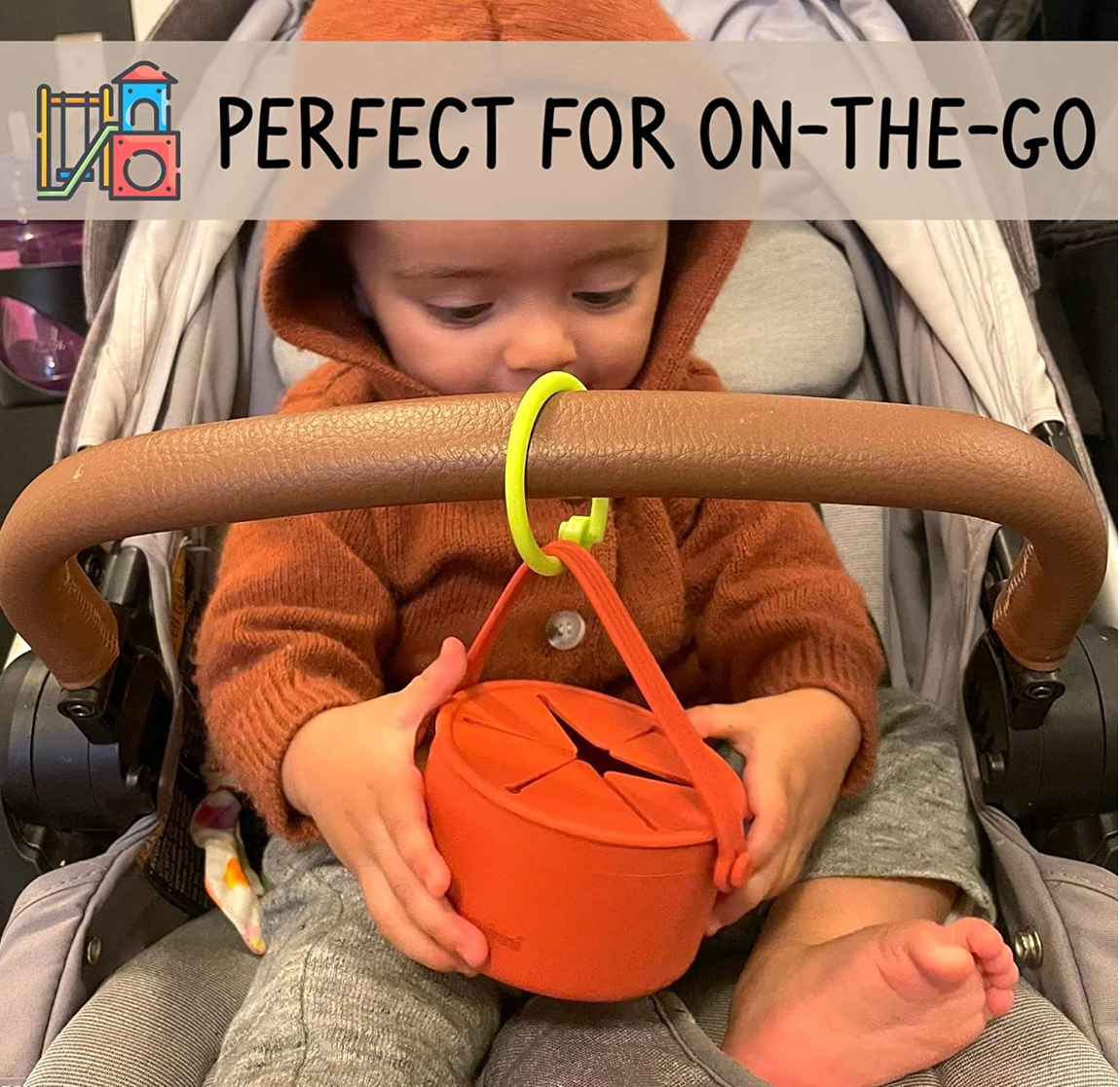 The little bucket handle encourages independent snacking for toddlers everywhere